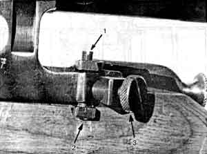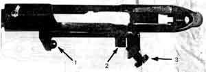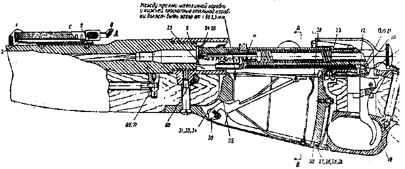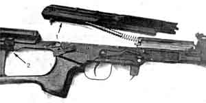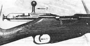 Фото 35. Винтовка, поставленная на длительное хранение. Курок 1 оттянут назад и повернут влево