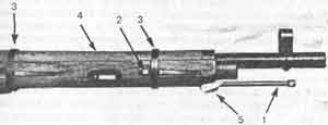 - снять вверх ствольную накладку 4, после чего отделить ствол от ложа
