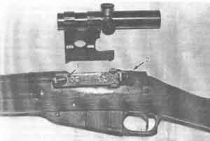 Кроме того, конструкция кронштейна должна обеспечивать свободное прицеливание открытым прицелом. Для этого оптический прицел крепится сбоку ствольной коробки (прицелы ПЕ, ПБ и ПУ имеют боковые кронштейны). Если прицел крепится сверху ствольной коробки, кронштейн должен иметь "окна", позволяющие работать с открытым прицелом (фото 88). Несмотря на все преимущества оптики, наличие открытого прицела на винтовке обязательно! Оптика - это стекло, которое может легко разбиться или треснуть. И тогда вся надежда на пристрелянный и выверенный открытый прицел. К тому же, имея хорошо пристрелянный открытый прицел, можно очень быстро "выставить" и пристрелять прицел оптический (см. далее).