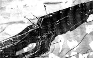 Схема 4. Отсечка-отражатель: 1- лопасть; 2 - пружинная часть; 3 - зуб