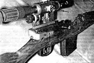 Постановка и подгонка прицела - штучная работа. Ввиду того что оптический прицел с кронштейном подгоняется к каждой конкретной винтовке, на основании кронштейна и на нижней его части наносится электропером номер винтовки.