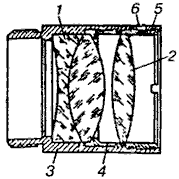 Схема 5. Магазин винтовки образца 1891-1930 гг.: 1 - коробка; 2 - подающий механизм; 3 - отсечка-отражатель; 4 - отсекающий зуб