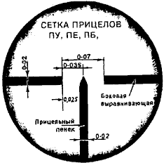 Схема 16. Прицельные нити прицелов ПУ, ПЕ, ПБ: