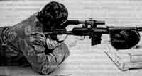 В боевой обстановке подходящий упор найти непросто. Носить его с собой - тяжело. В практике подвижного боя в составе разведдиверсионной или егерско-поисковой группы приспосабливать винтовку для стрельбы на упоре долго, да и взять его в подвижном огневом контакте негде. Поэтому снайперы старой формации, которым приходилось стрелять с побежками и перебежками, падая, поднимаясь для мгновенного рывка метров на 40-50 и снова падая, мгновенно изготавливаясь для стрельбы, исповедуют спортивный способ стрельбы лежа с ремня. Упором для такого способа стрельбы служит обыкновенный брезентовый общевойскового формата оружейный ремень.